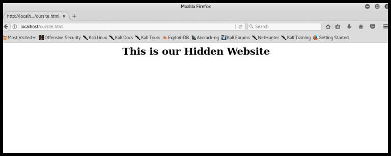 We can now verify that our website is accessible on the localhost by accessing it through a normal web browser, e.g., Firefox, with the address