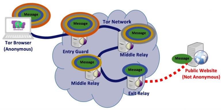 The above diagram shows how the message would flow until it reaches the public website. We can see that the Tor browser adds as many layers as the number of relays in the chain.