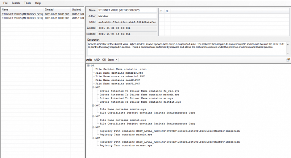 STUXNET list of IOCs in FireEye IOC Editor